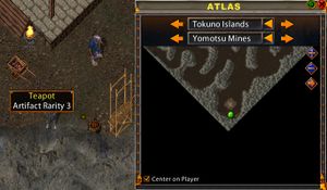 (141° 31'N 84° 30'W) South facing teapot. Located in the very northeastern section of the mine, near the Fire Beetle. It spawns right next to a set of bones.